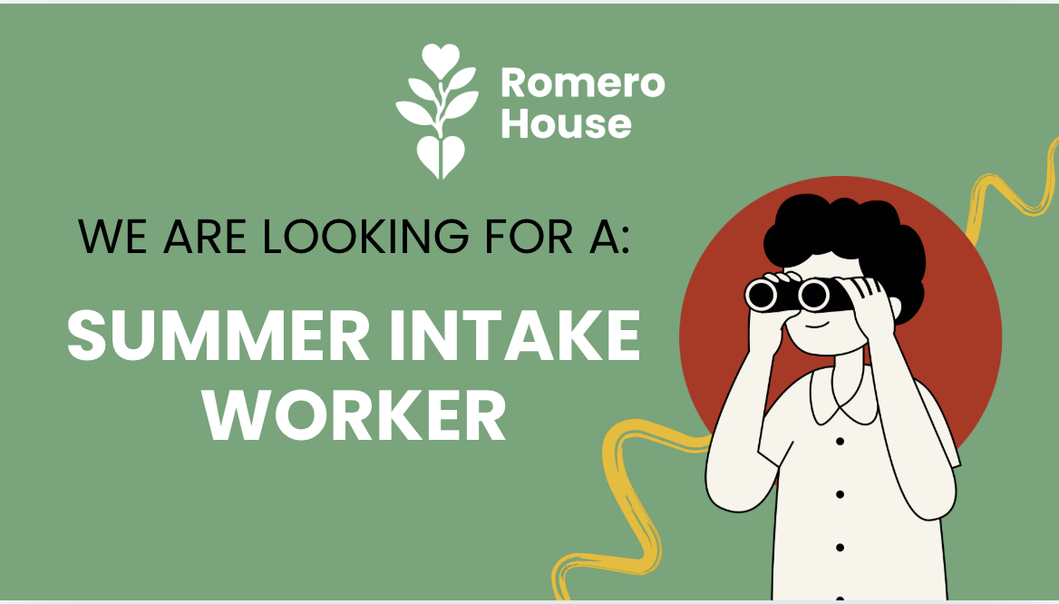 The Romero House community welcomes refugee claimants with housing, immigration and settlement support. The Intake Assistant will support the intake supervisor to find emergency shelter, navigate the refugee determination process, navigate social assistance, open a bank account, get a local phone number, and enroll in school. They will provide claimants with material support like food, clothing, toiletries, baby products, and other donated items. They will share information and referrals for housing searches, tenant issues, medical care, employment services. They will also greet guests to our community centre, answer our main phone line, and receive in-kind donations and packages.